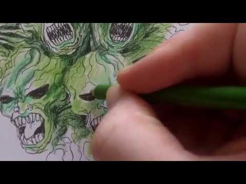 How to draw The Souls of the Dead. This was a fun drawing I did last year 2014 and was inspired by a nightmare on elm street movie with all the souls on Freddy Kruegers chest. I made the soul faces green to make them more in keeping with an earthy green for souls.